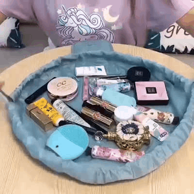 ✔ PACK UP INSTANTLY - Packing up all your products is no longer a chore. Just place everything on the open makeup bag, and pull the strings to close. It is that simple.